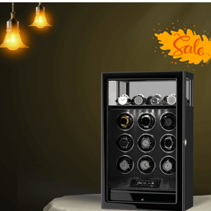 Remontoir pour 9 montres avec rangement supplémentaire pour 4 montres, télécommande LCD, verrouillage par empreinte digitale/verrouillage par clé - Noir