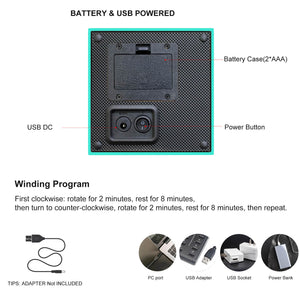 Double alimentation : notre remontoir de montre unique peut être alimenté par un chargement USB ou 2 piles AA (non incluses), vous pouvez le charger par une banque d'alimentation pendant le voyage et est pratique à transporter.