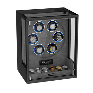 Verrouillage D'empreinte Digitale 3 Remontoirs De Montres Avec Télécommande LCD De Stockage Supplémentaire De 4 Montres - Noir