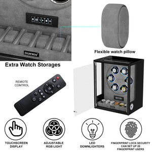 Verrouillage D'empreinte Digitale 3 Remontoirs De Montres Avec Télécommande LCD De Stockage Supplémentaire De 4 Montres - Noir