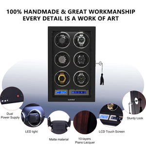 Remontoir de 6 montres avec télécommande à écran tactile LCD, moteurs Mabuchi silencieux